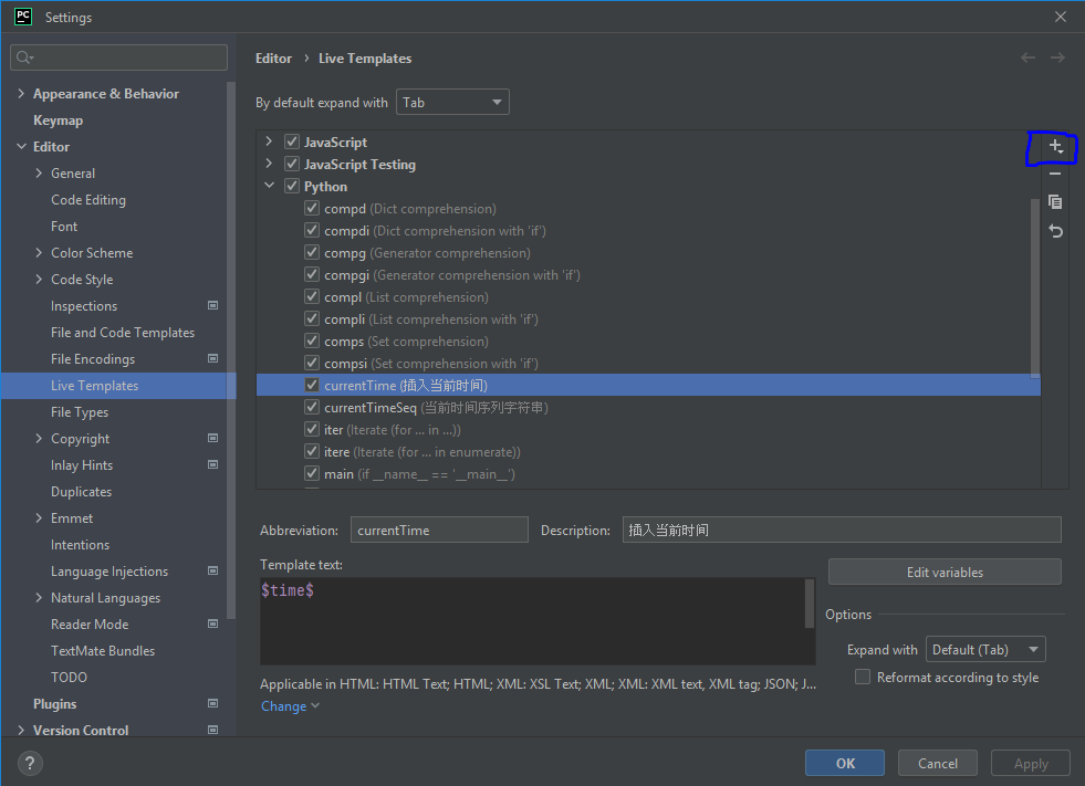 Define选择Everywhere,Apply让配置生效编辑时输入
