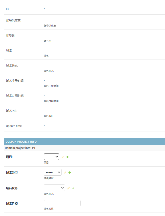models.py class DomainProjectInfo (models.Model): domain = models.OneToOneField(RawDomains, on_delete=models.CASCADE, help_text="域名" , verbose_name="域名" ) project = models.ForeignKey('Project' , on_delete=models.CASCADE, help_text="项目" , verbose_name="项目" )
