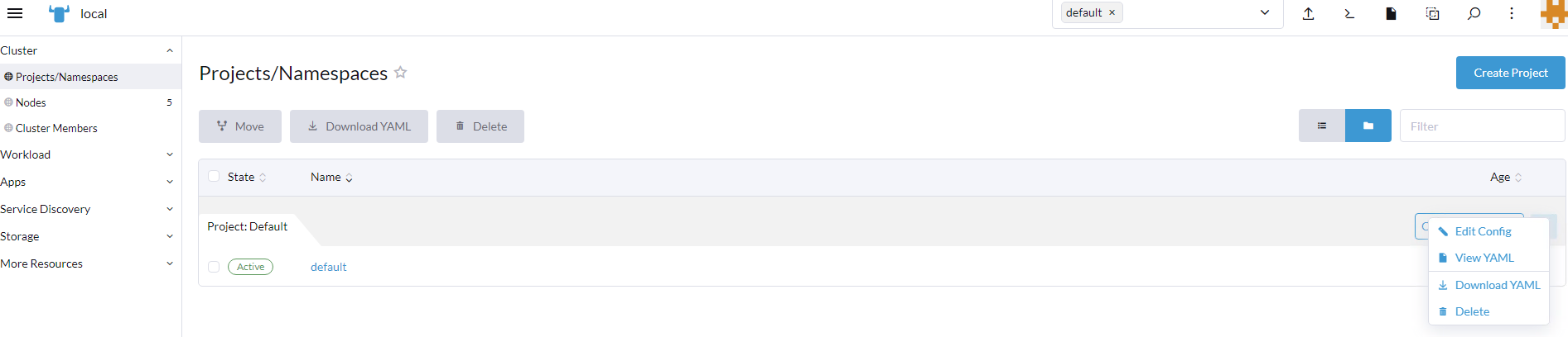 Project分配Project/Namespaces Role,所以为了分配权限,需要对不同的项目创建对应的Project。进入对应的 Cluster,选择要分配权限的