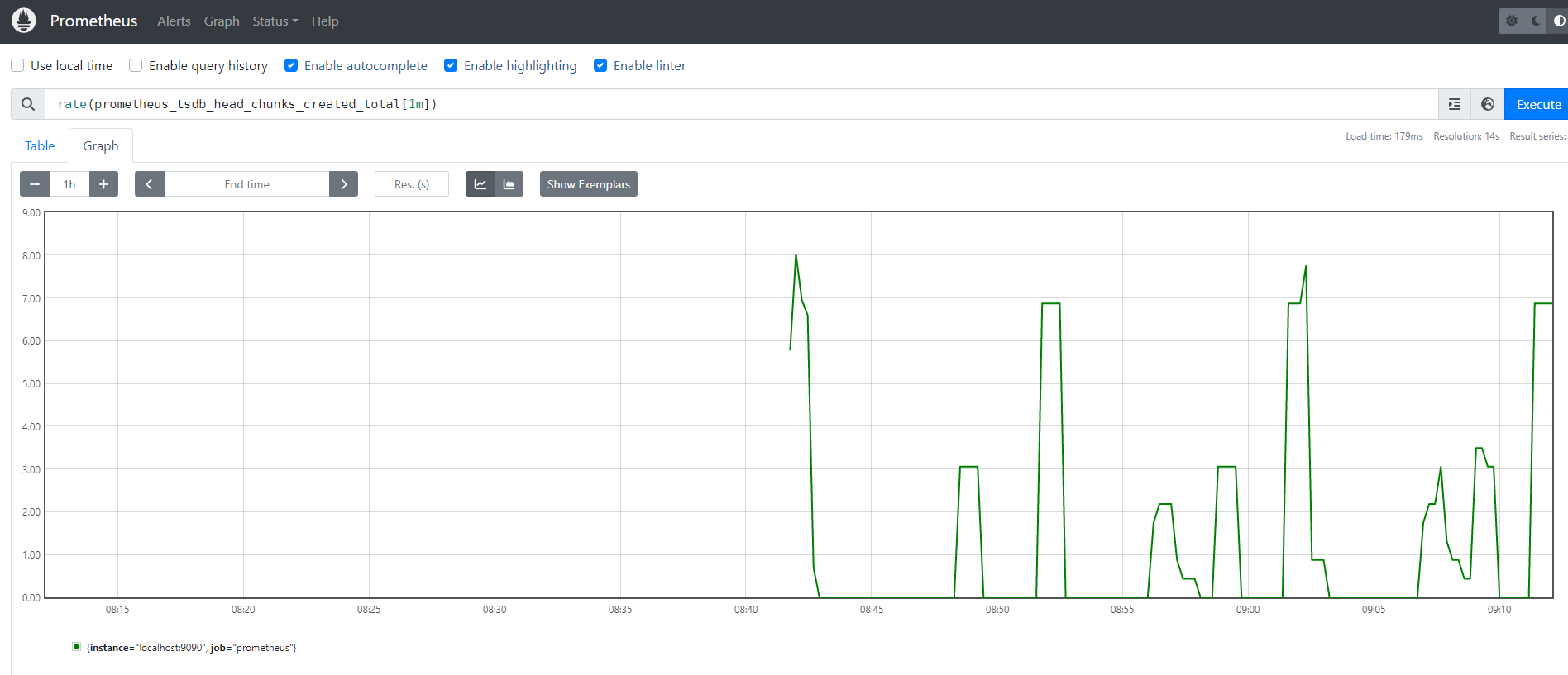 启动后,可以通过 $Prometheus_IP:9090 访问 Prometheus Server UI