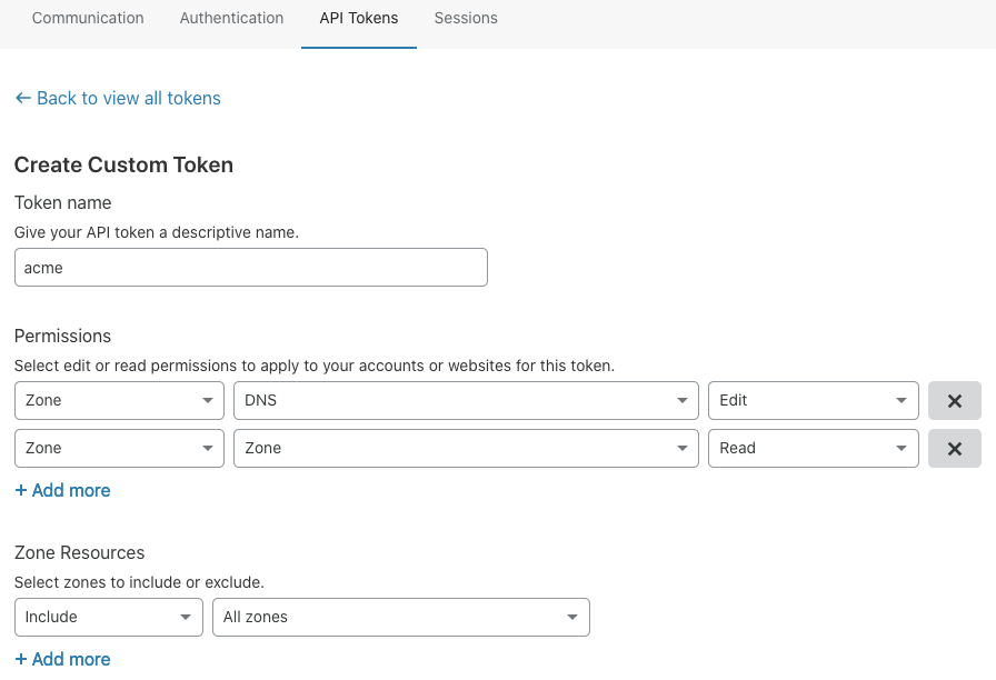 登录 cloudflare,点到 My Profile > API Tokens > Create Token 来创建 Token: