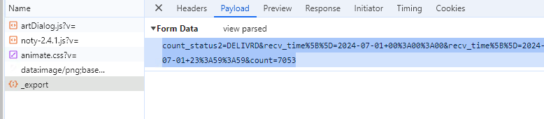 以上 POST 数据转换成 URI: count_status2=DELIVRD&recv_time%5B%5D=2024-07-01+00%3A00%3A00&recv_time%5B%5D=2024-07-01+23%3A59%3A59&count=7053