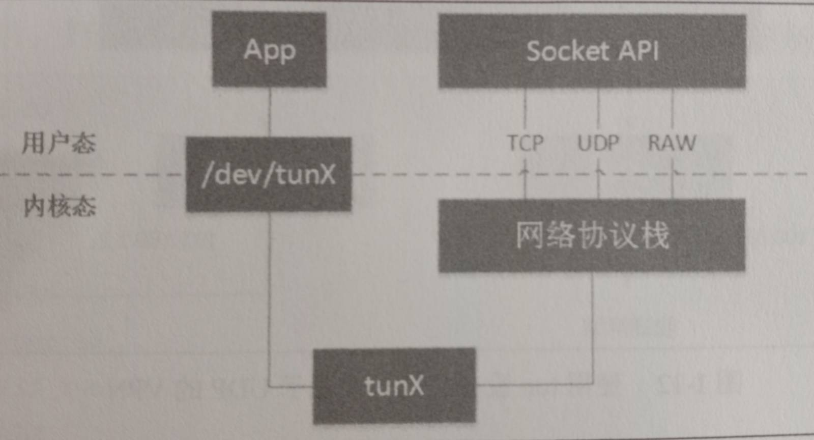 - tun 设备的 /dev/tunX 文件收发的是 IP 包,因此只能工作在网络层(L3),无法与物理网卡做桥接,可以通过三层交换(如 ip_forward) 与物理网卡交互