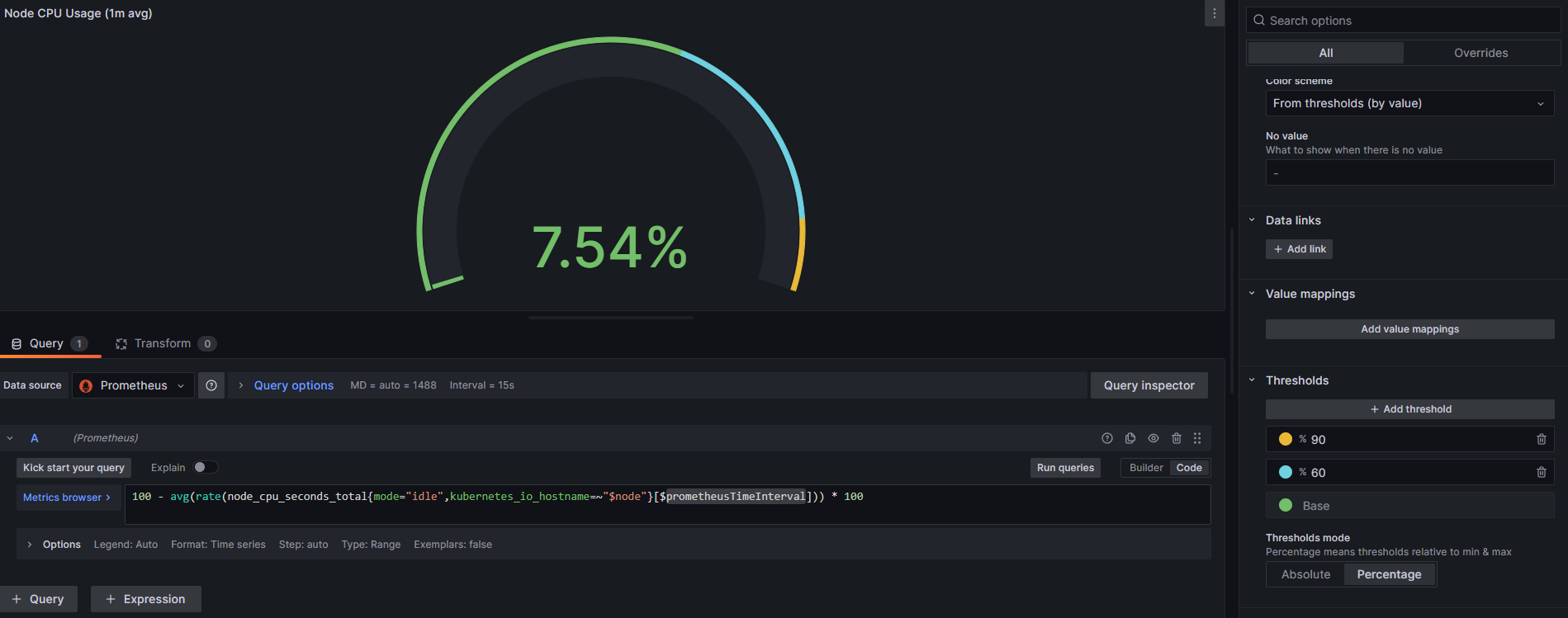 例如要配置百分比类型的图标,可以在 Panel 配置中的 Standard options 中选择 Unit 为 Misc -> Percent(0-100)