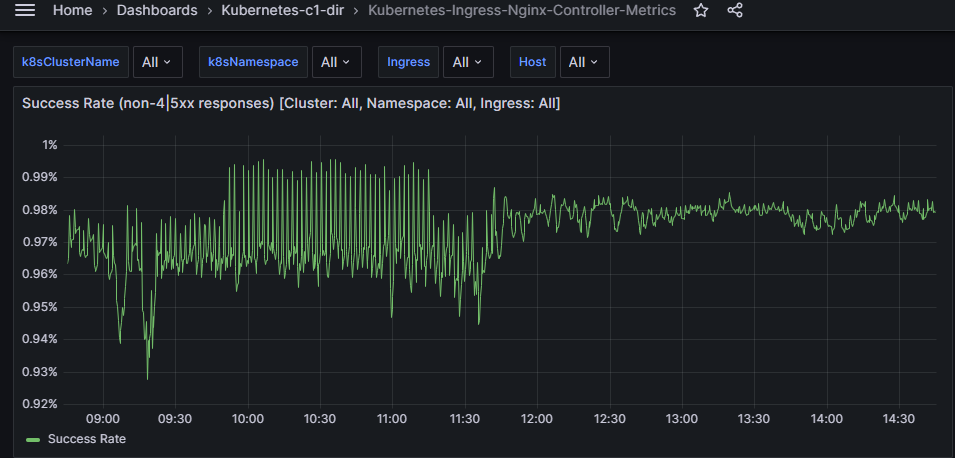 sum(rate(nginx_ingress_controller_requests{cluster_name=~"$k8sClusterName",ingress=~"$Ingress",namespace=~"$k8sNamespace",status!~"[4-5].*"}[2m])) / sum(rate(nginx_ingress_controller_requests{cluster_name=~"$k8sClusterName",ingress=~"$Ingress",namespace=~"$k8sNamespace"}[2m]))