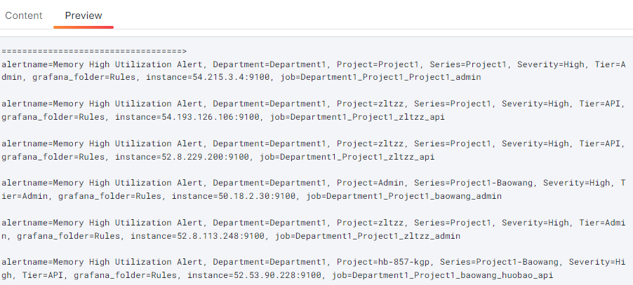 segments = re.split(r"\n\s*\n", text.strip())的分隔符,用于将 Grafana 发送的消息分割成完整的消息,分隔符取决于 Grafana 模版本示例使用的模版如下: