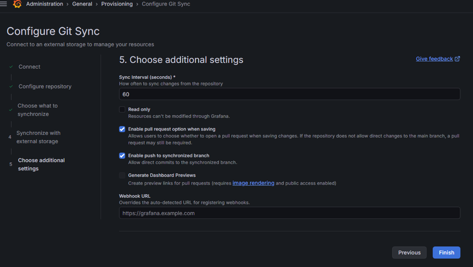 Git Sync 可以将 Grafana 资源与 Git 仓库同步,实现版本控制、协作和自动化部署