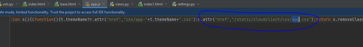 问题原因 在 Modular Admin 代码中搜索 app.css,除了 index.html 引用了此文件,js/app.js 也引用了此文件。在 Django 中使用次模板,需要修改此处的路径正确。