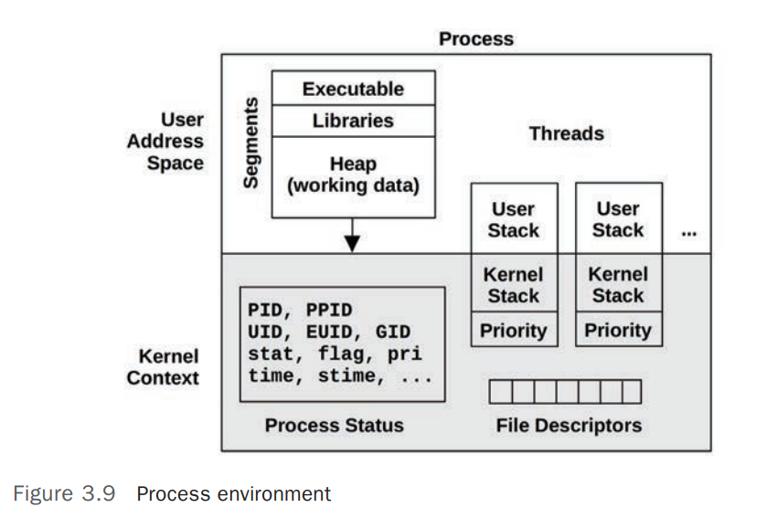 - Processes/Kernel 都在自己独立的地址空间中(Private Address Spaces)运行,不用担心地址争用(Contention)