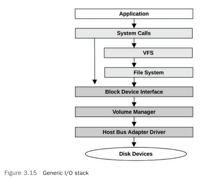 图中左侧跨过 VFS 和 File System 直接调用块设备(Block Device)的路径一般是管理工具(Administrative)或者 Databases 使用。
