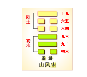 - 蛊 : 本义是器皿中有毒虫、生虫,引申为腐败、腐坏、混乱、需要整治弊病的状态。蛊卦的主题就是 治蛊 ,即整治积弊。