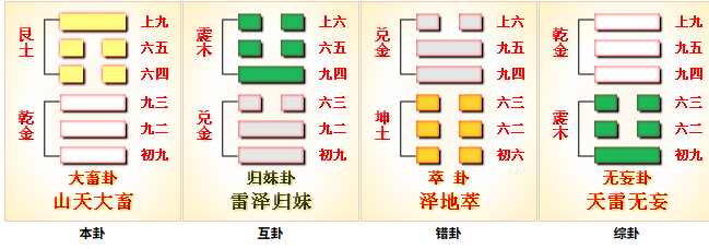 - 有历利已,不犯灾也 : 已,止、停。大畜卦主旨为 “利贞”,为止而积聚,各爻如果能随大势就有利。初九刚爻得位又有六四正应,在乾中,乾为刚健,容易勇进,则 “有历,利已”,如果勇进不止,就是犯灾眚。