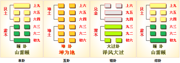 - 舍而灵龟 : 山雷颐卦由风地观卦九五初六互换爻位而来,在周易体系中,内卦为我,外卦为他,观卦九五来到初九,变为颐卦,是舍弃尊位来到下位,故称 “舍尔灵龟”,灵龟象征“心之灵明”“德之根本”,人若舍此而追外物,是“舍本逐末”。