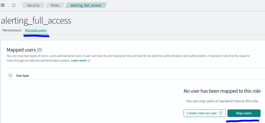 - 在 Security - > Roles 页面,找到 opensearch_dashboards_user Role,在 Mapped Users 页面,将该用户也映射到这个角色中。