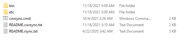 bin 目录下包含常用命令,其中 rsync 命令和 linux 中使用方法相同