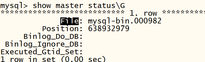 File和Position应该是确定不变的值,后续可根据此值,让其他从库和新选定的主库建立主从连接。